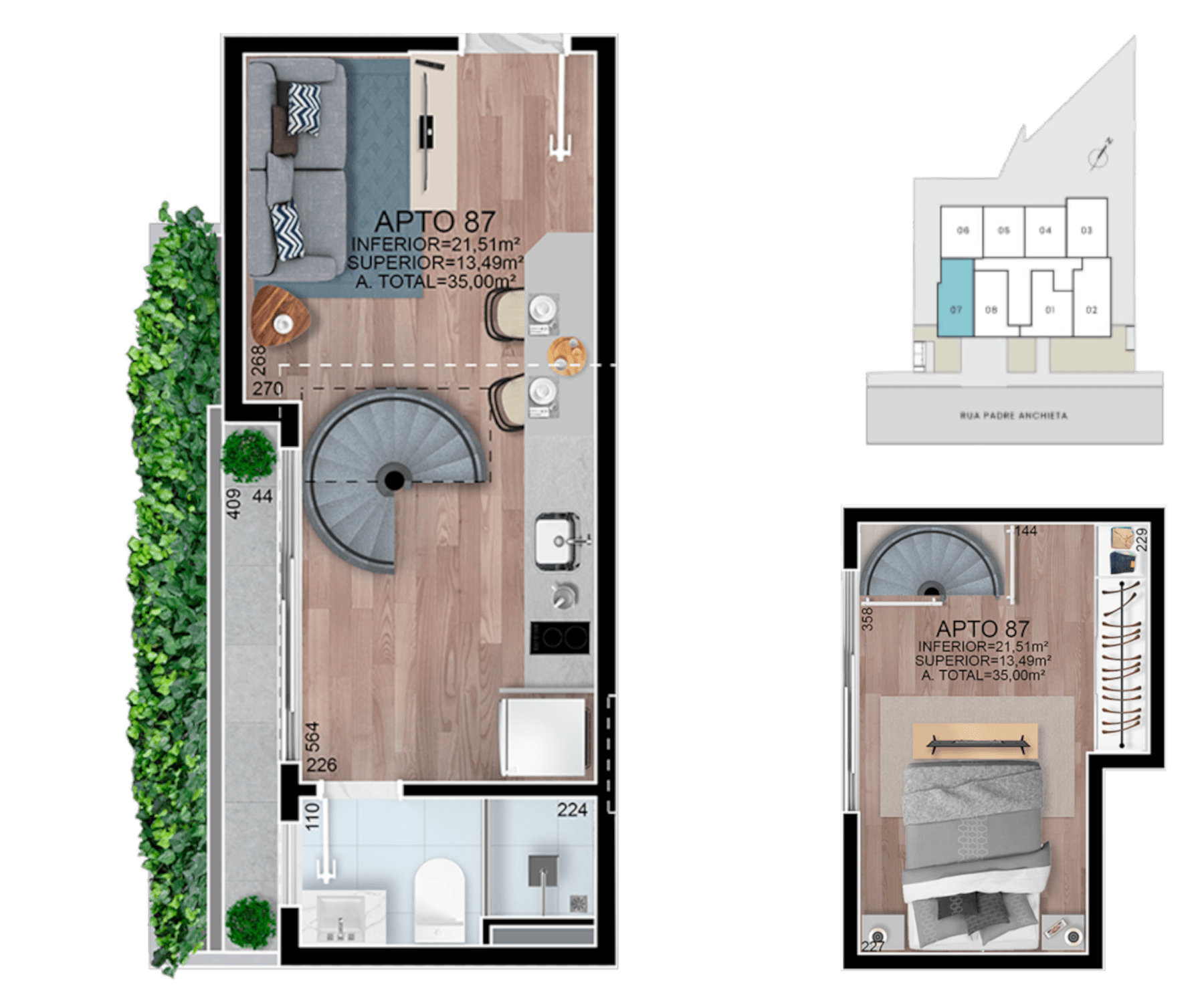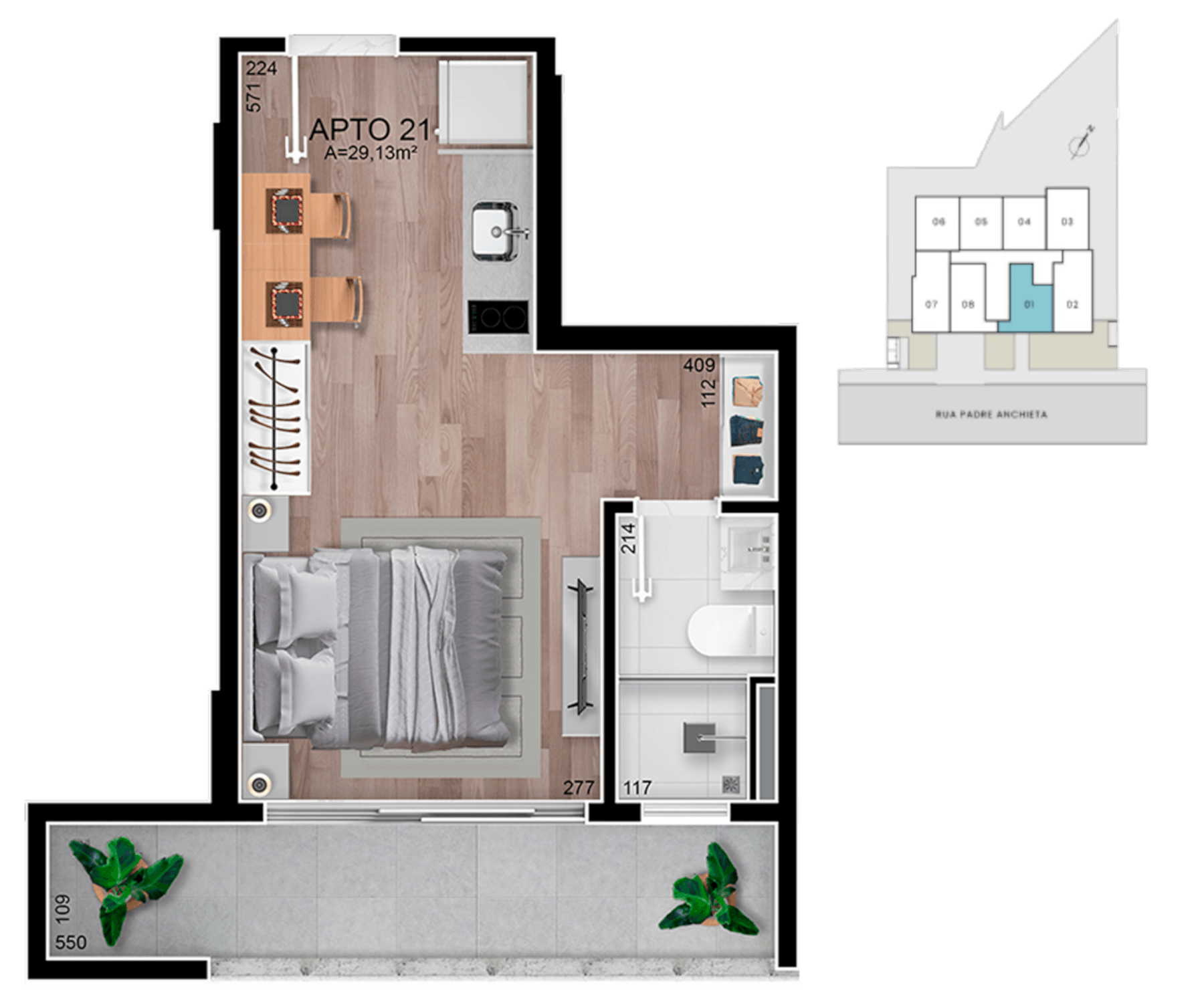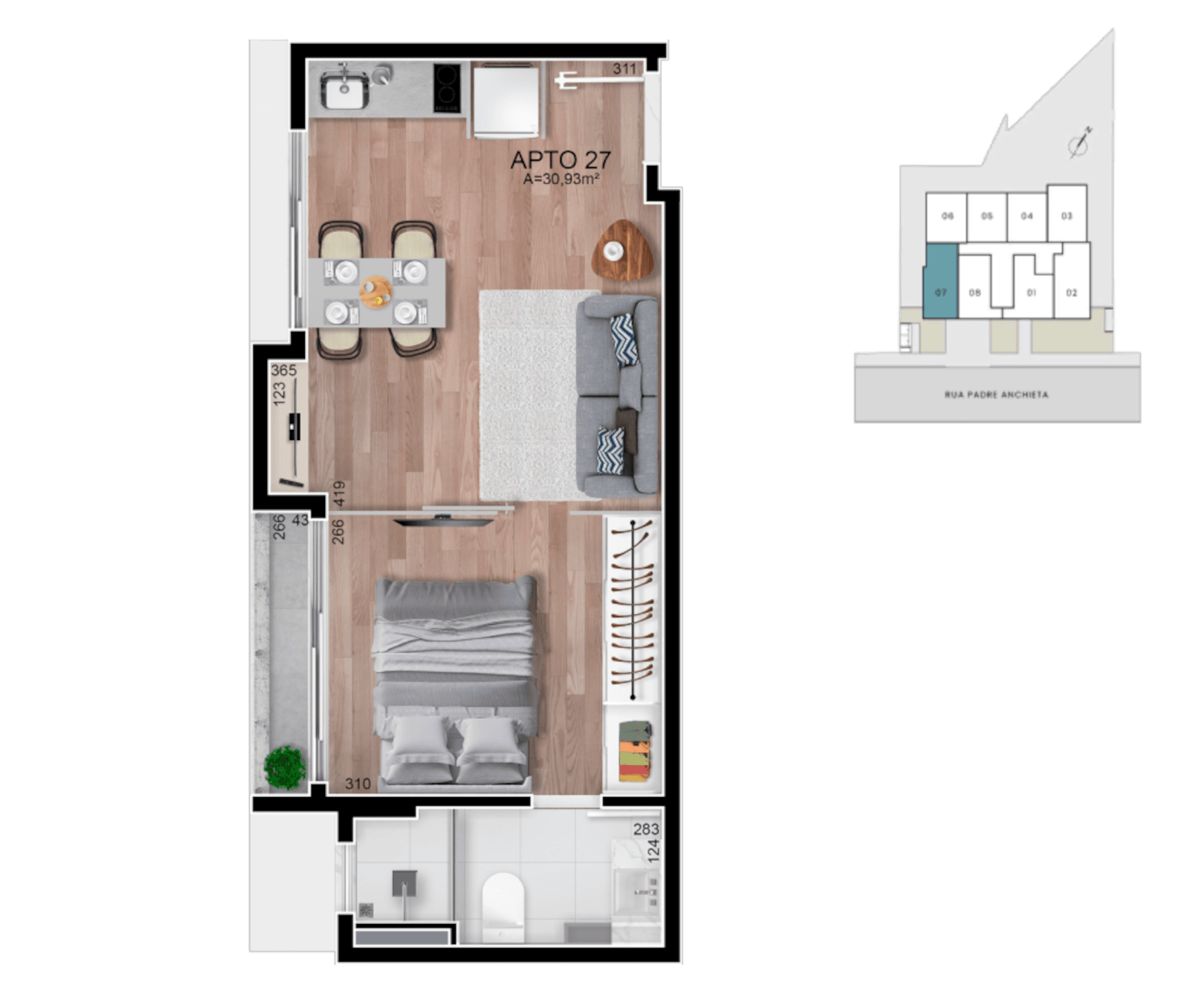 • Serão entregues com piso em porcelanato ou vinílico.