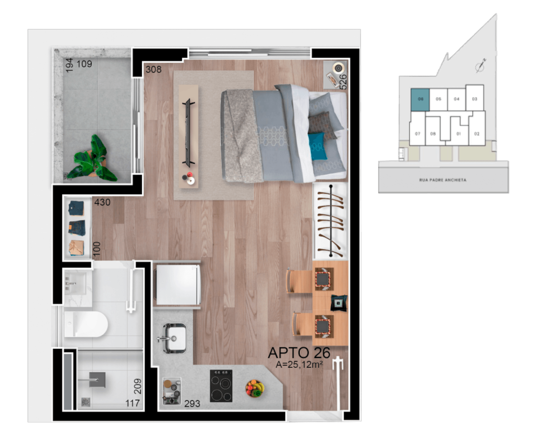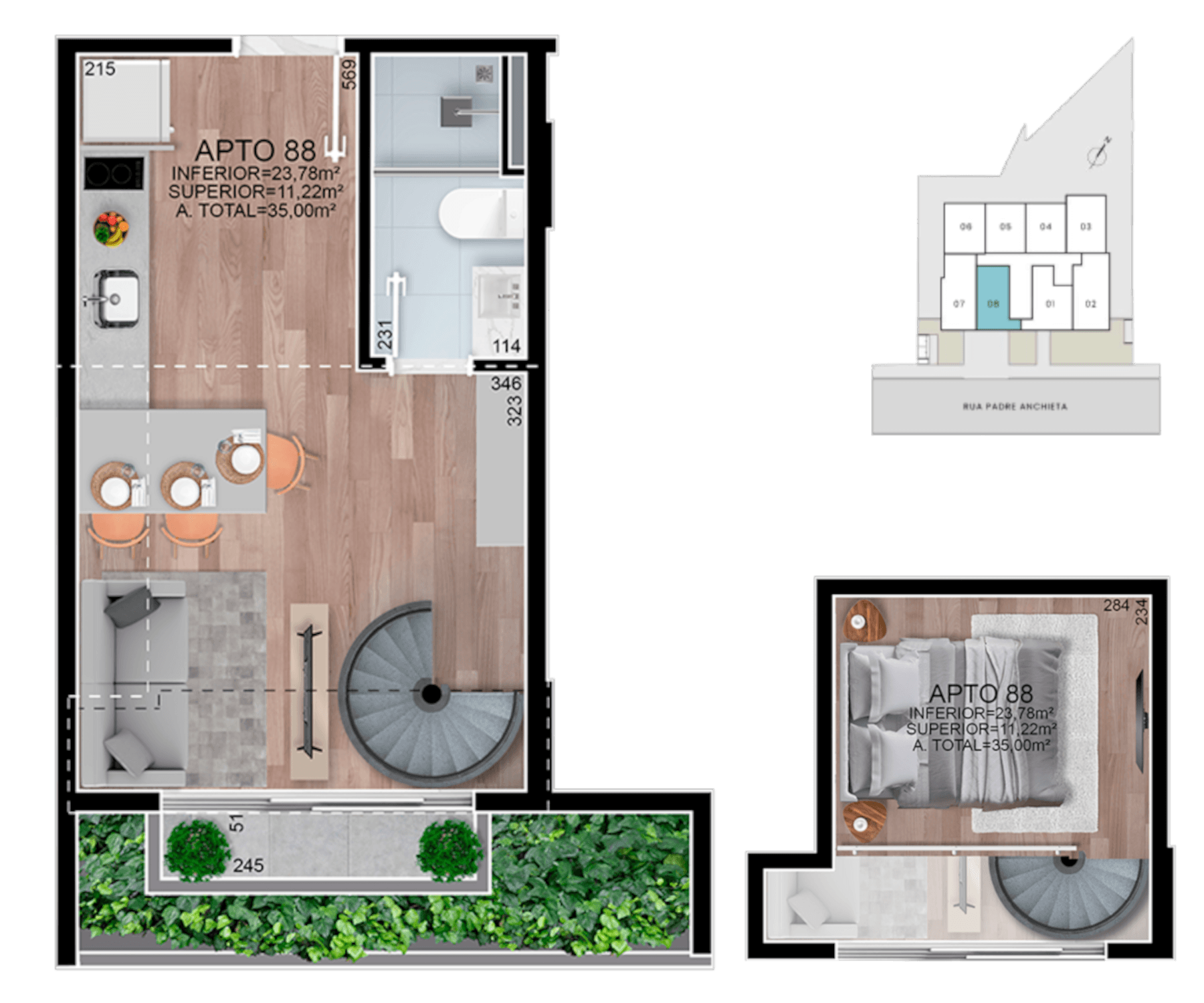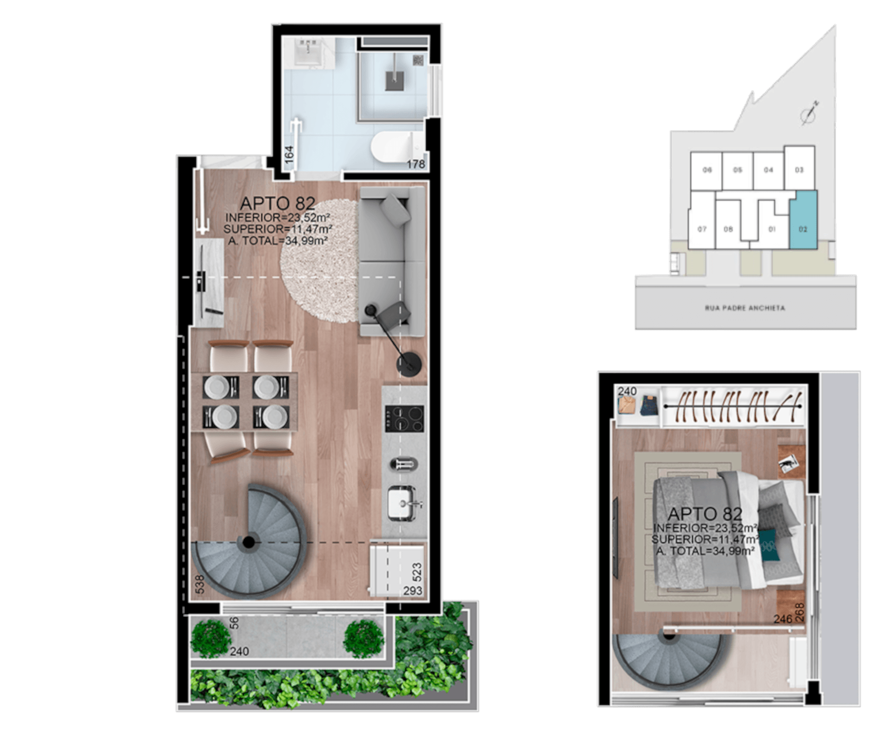 • Serão entregues com piso em porcelanato ou vinílico.
