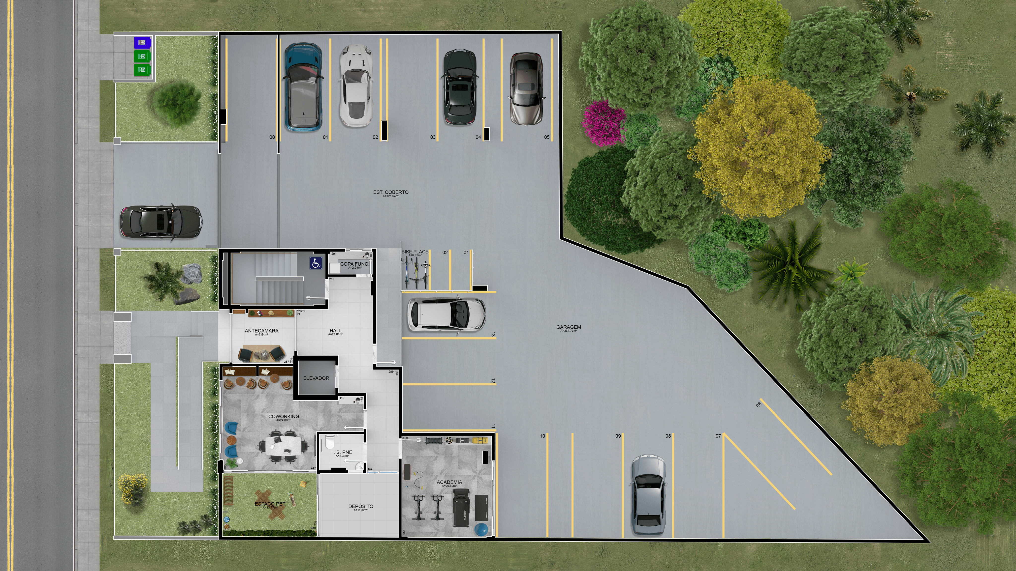 • Sinalização e customização do estacionamento.