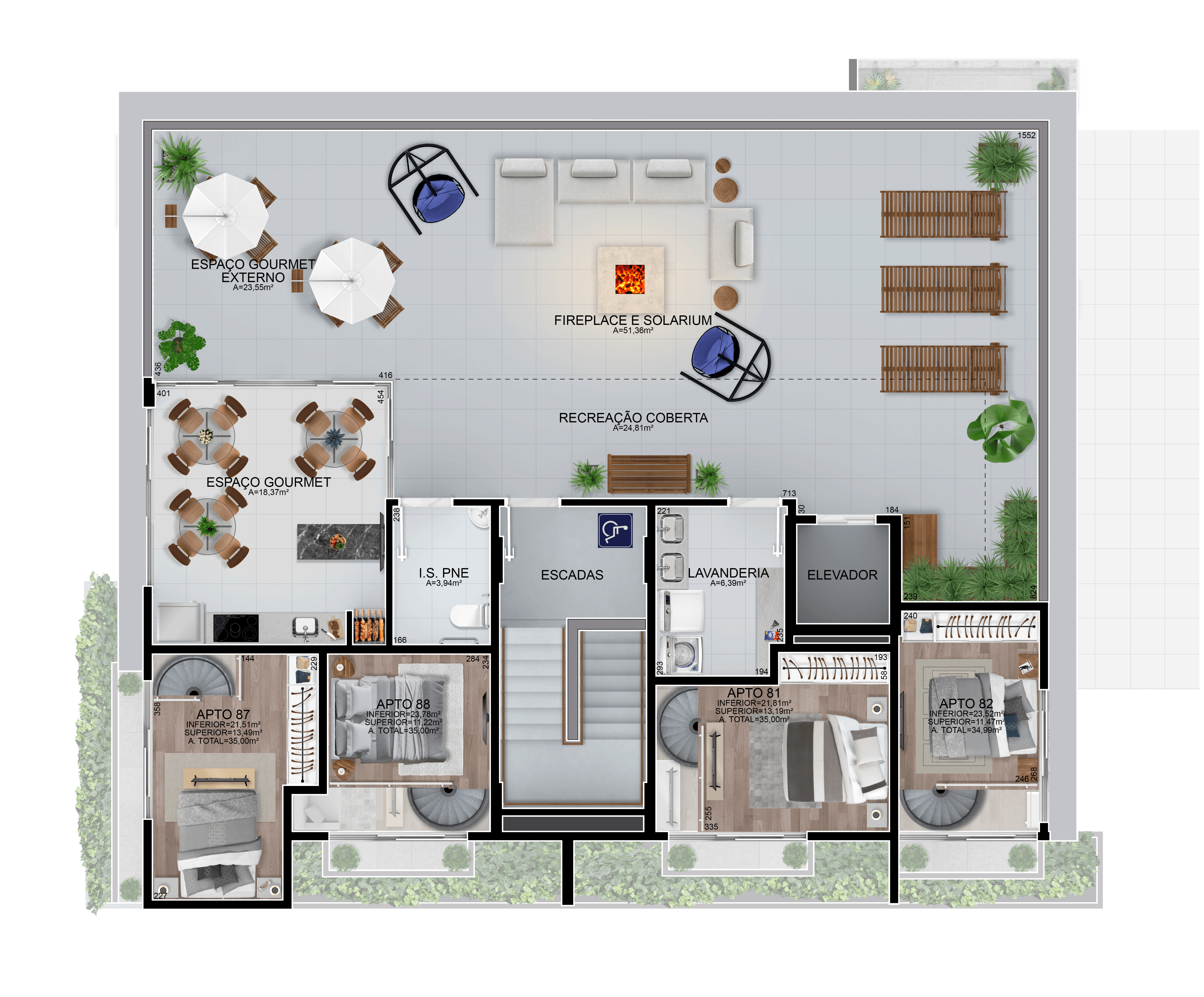 ÁREAS COMUNS E DE SERVIÇO